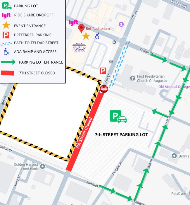 Preferred parking is available in the Bell Auditorium parking lot and can be purchased in advance HERE.